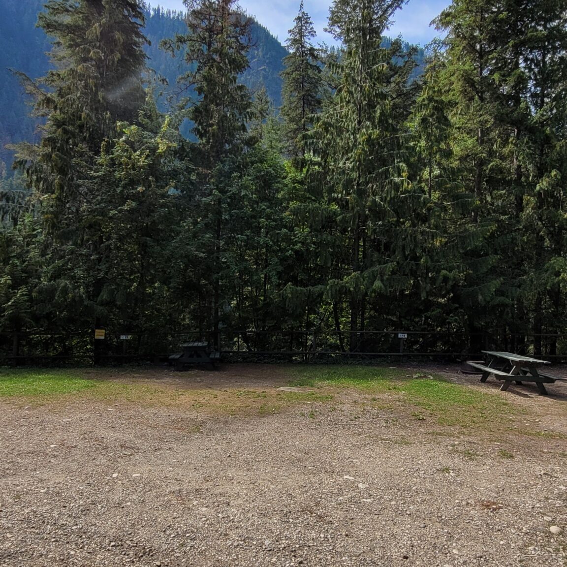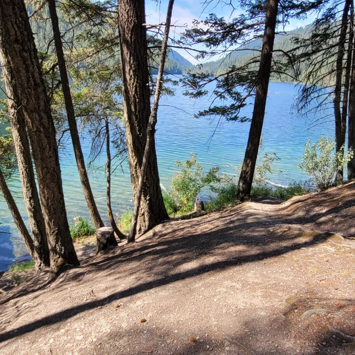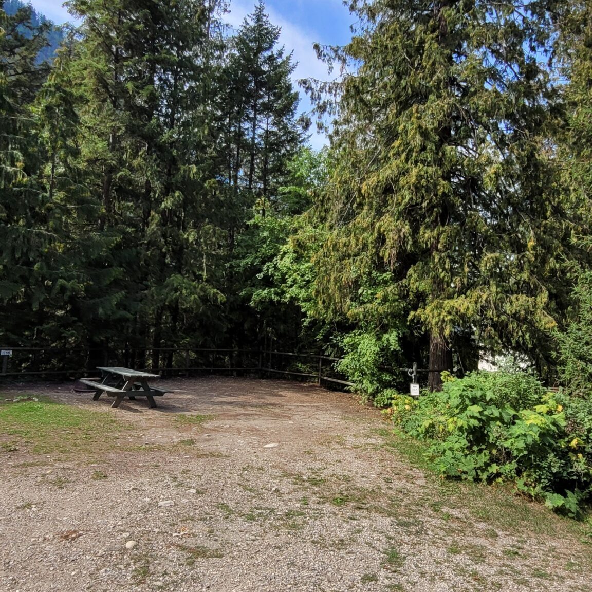Welcome to the forest! Everywhere you look there’s greenery but none of it impedes enjoying Site D where the ground is level and you’ll still see the lake sparkle between the tree trunks.