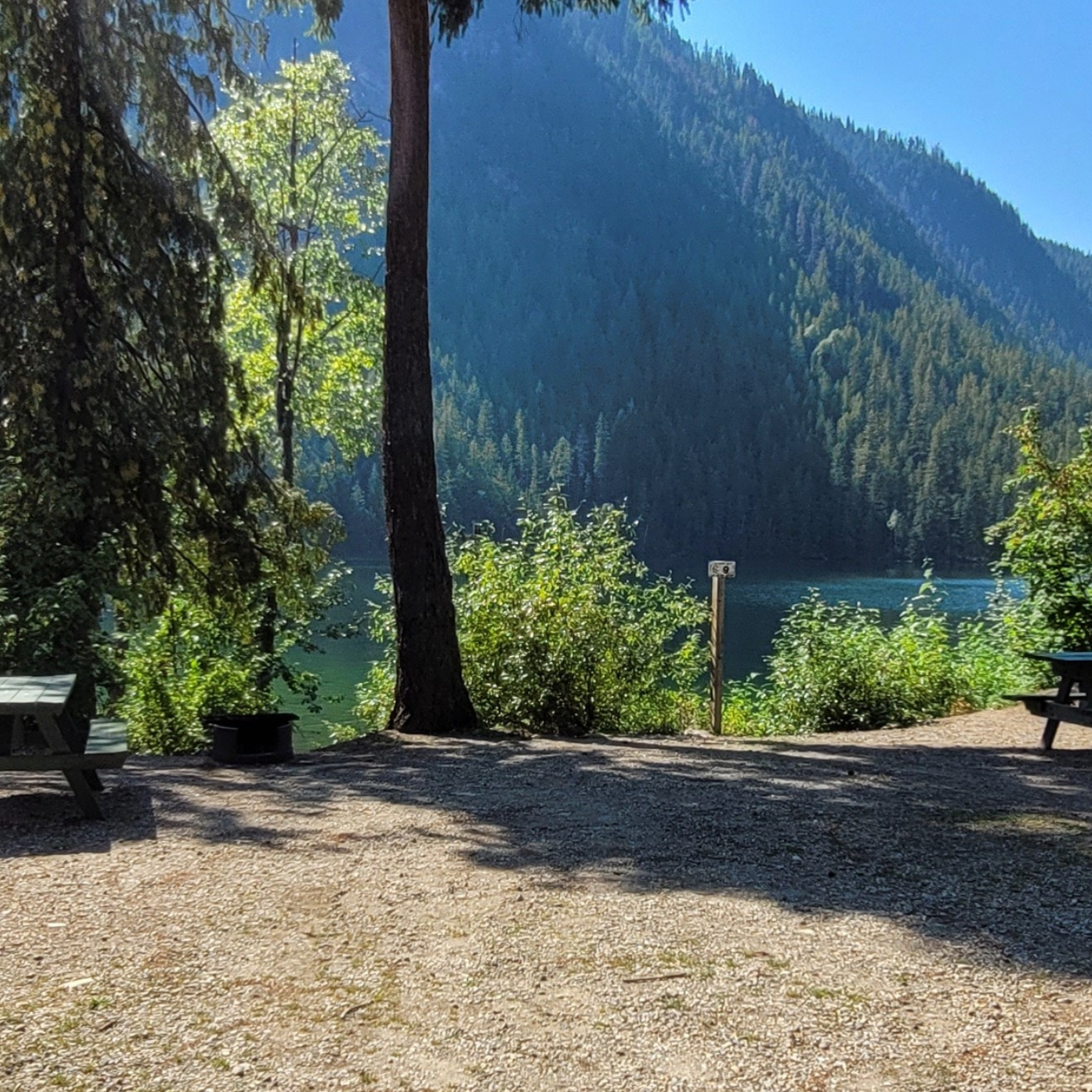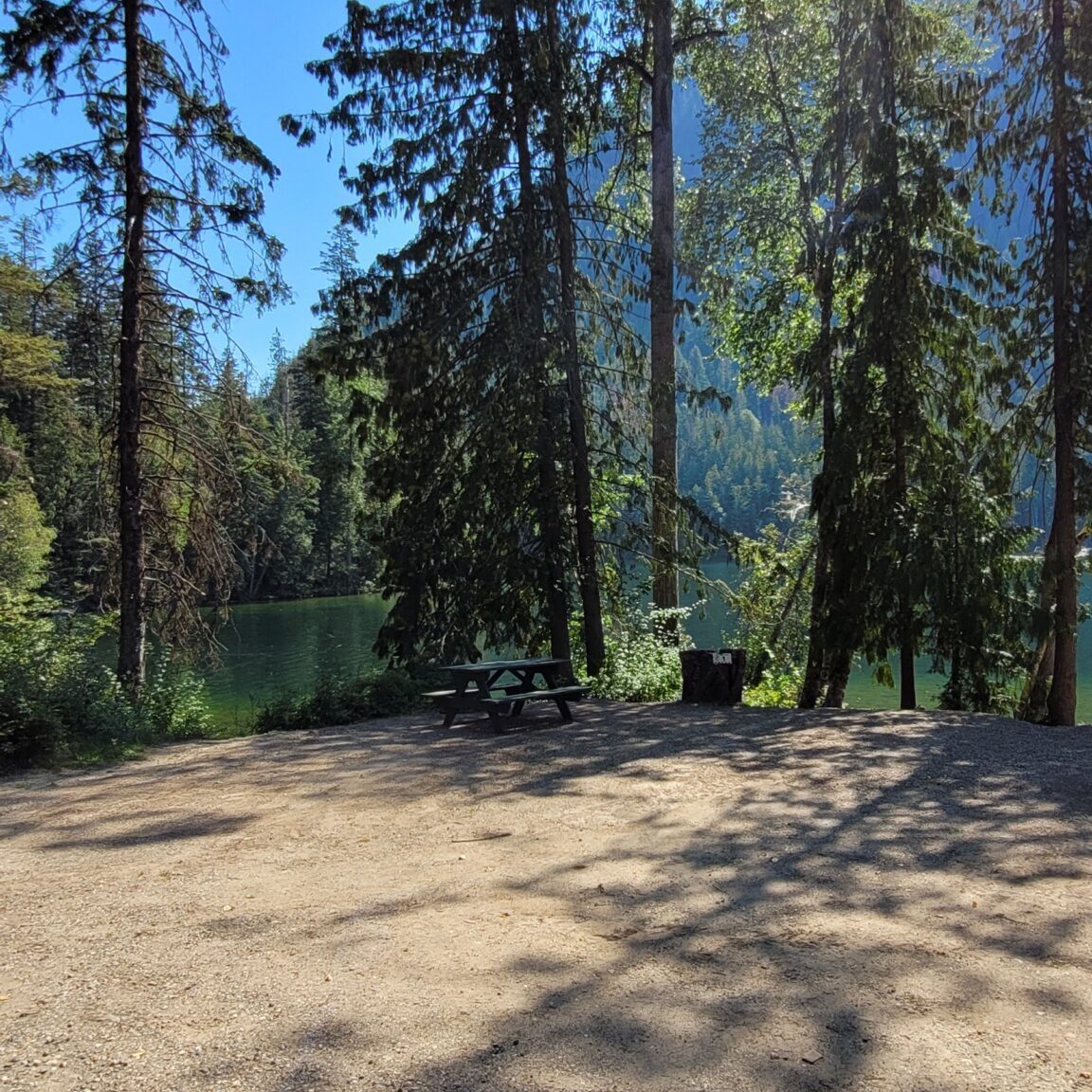 Slightly separate from Campsites 2 and 4 thanks to trees and foliage, Campsite 3 will have you set up and ready to play in no time. Watch for eagles nesting across the lake and fish from shore, the water is just a few feet of sloped path away.