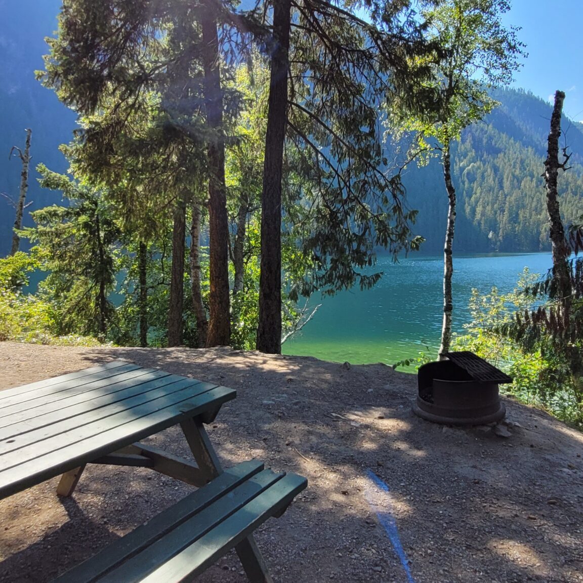 Designed to please, Campsite 2 is open to the sun and trees line the west side for shelter. A gentle slope takes you to the shoreline where you can pull a paddleboard or fishing boat to shore after a day playing on Echo Lake.
