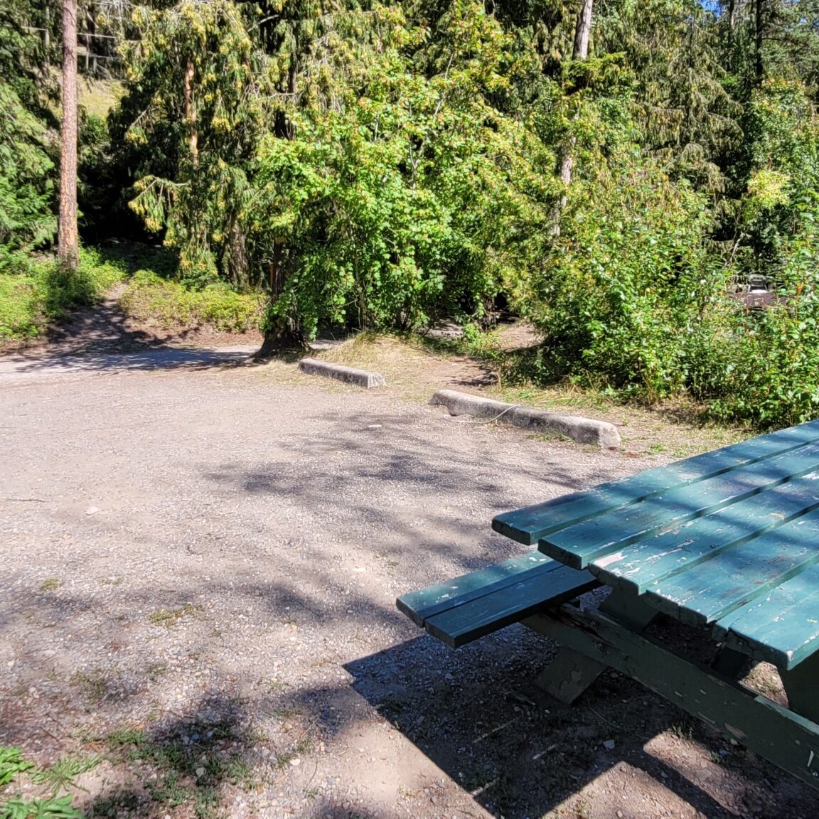 A true ‘end spot’ nestled between the upper road and Campsite 10 making this our most private waterfront Campsite. Popular for tenting with level ground and sheltering trees for shade and rain cover or back in your trailer or small RV. Your picnic table and campfire pit stay dry under the trees and the site opens up at the level shoreline where a small boat or paddleboard can be beached. Beautiful views and a quiet place to relax await you at Campsite 11!